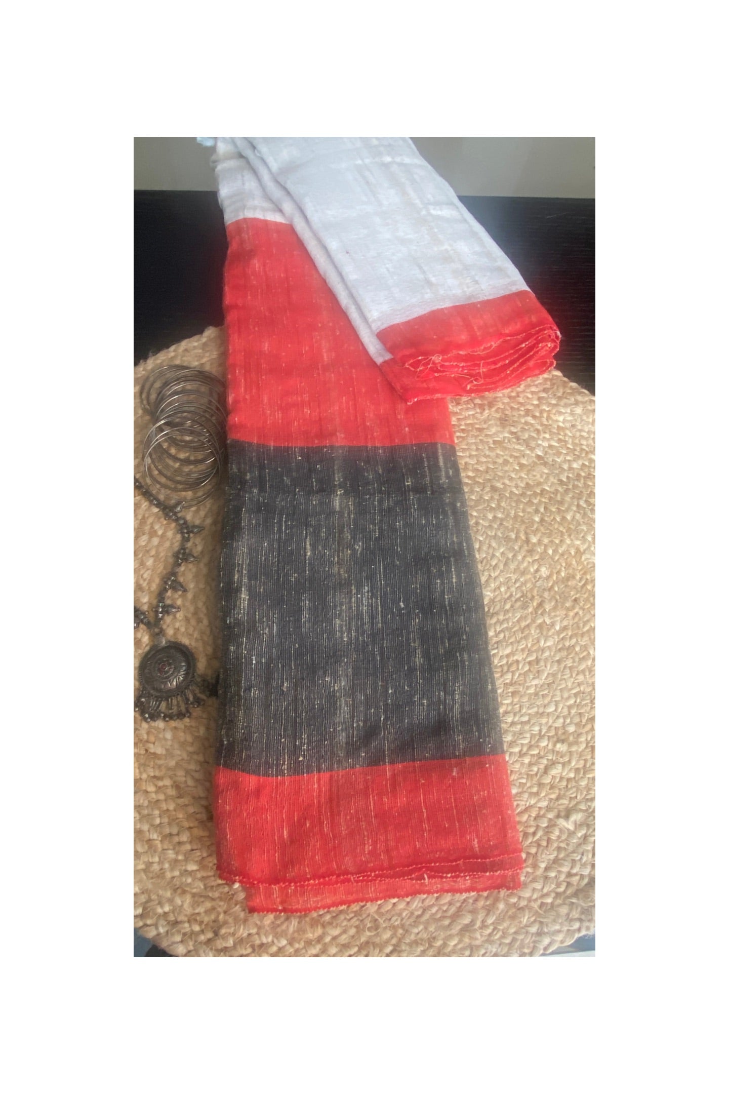 This off white black and red ketia saree is perfect for work, casual and party wear. It offers comfort and style and a must have saree.